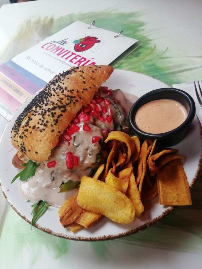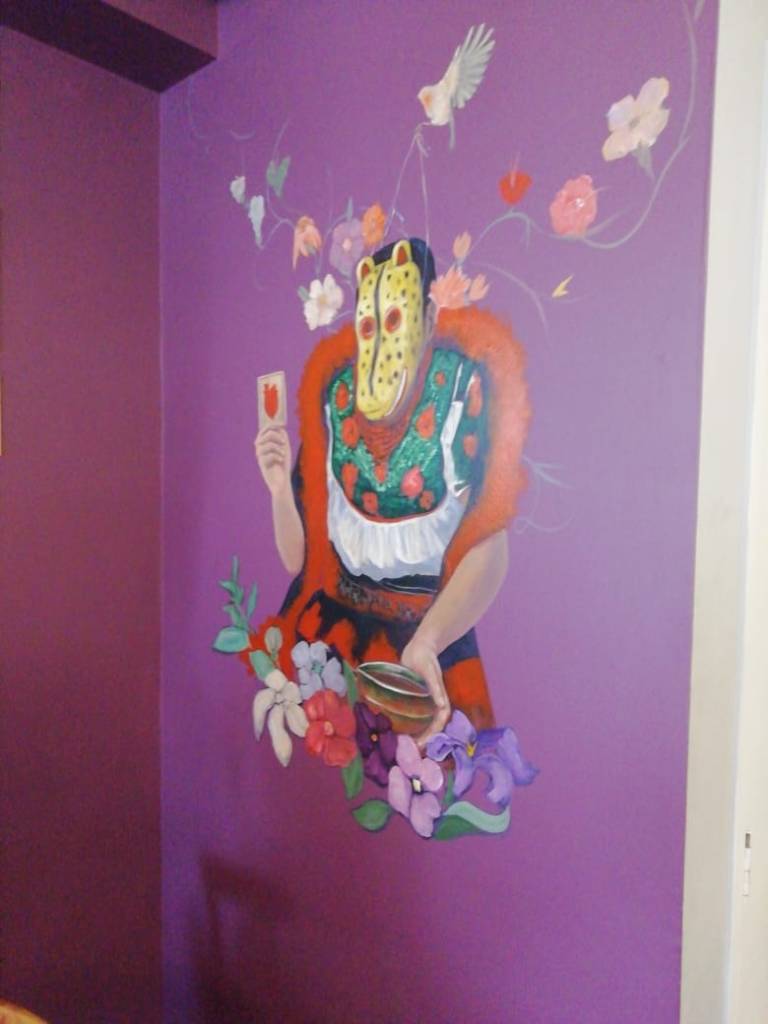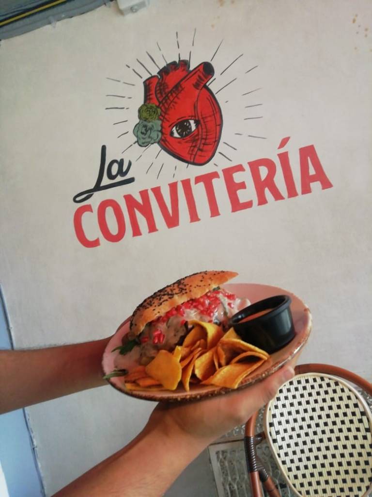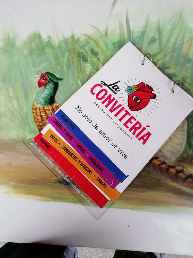 Nosotros visitamos La Conviteria, es un lugar en la colonia del valle de la CDMX, su decoración, en sus paredes tiene murales de Damián Andrade, quien también pinto las mesas, ya a pintado algún otro restaurante, sus murales representa algunos alebrijes, y 2 cocineros, hombre y mujer, el con una mascara de murciélago de una región oaxaqueña cerca de las costas de Guerrero, es un cocinero que esta cerca de ser un chaman que esta haciendo magia para presentarnos unos platillos como los que tuvimos el placer de probar.