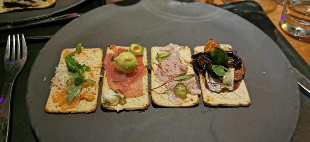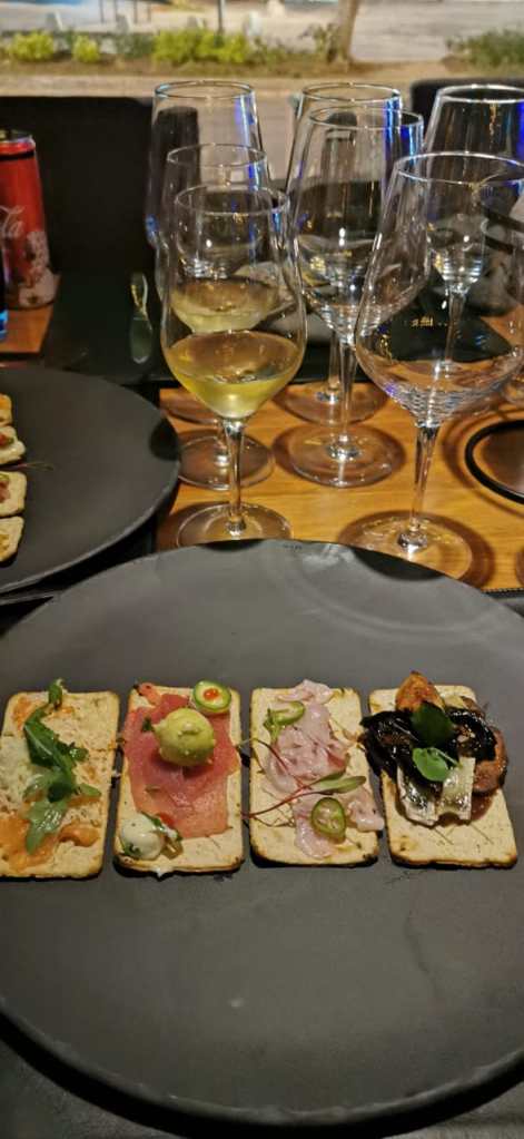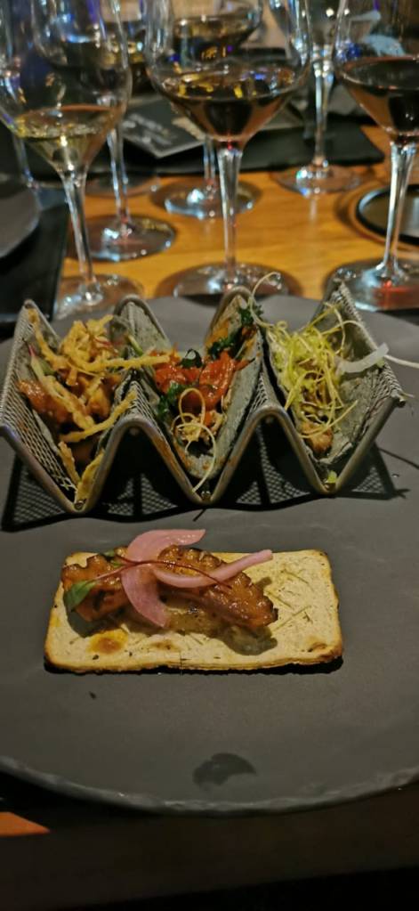 Posteriormente se realizó una cata maridaje diseñada por el chef Horacio Giner y maridado con vinos de la bodega italiana @LungarottiWine que presentó sus mejores etiquetas, empezando por un #Chardonnay de la línea #Lu y un #Sangiovese #Merlot. Para seguir con su línea prémium #Montefalco y un #Sangiovese #Merlot #Sagrantino; y terminar con un #Sagrantino 100%. El maridaje se realizó en el mismo orden con una tostada de carpaccio, un montadito, un tiradito de atún y un tiradito de hamachi; y continúo con taco de prime rib, taco de lechón, un delicioso taco de pato y cerró con una tostada de pulpo Giner, perfectamemte maridada con el Sagrantino 100%. La experiencia de «Entre Arte y Vinos volverá a realizarse los miércoles 23 y 30 de octubre y se puede reservar en http://www.entrefuegos.com. Una experiencia única en @entrefuegos.mx