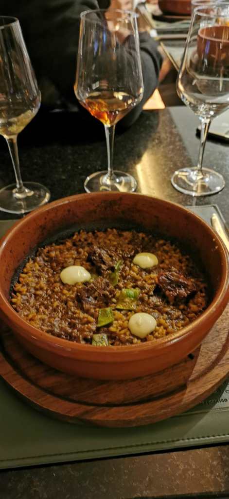 La cena inició con una clase de coctelería con @tupackirby quien realizó cuatro cocteles realizados a base de jerez y aprovechó para sorprender con su magia. Posteriormente la cena inicio con un rollo de jamón ibérico frito y una Totoaba con aliño de naranja y ajo con aceite de pepino, maridado con una manzanilla de Lustau Continuamos con un arroz cocinado a las brasas por cuatro horas, con cebolla, ajo, vinagre, pimientos y sazonado con jugo de carne y rabo de toro, acompañado por un Jerez Oloroso de #Lustau Y cerramos con un volcán de chocolate y helado de vainilla, maridado con un Jerez Pedro Ximénez. Todo coordinado por @terravid para una increíble experiencia.