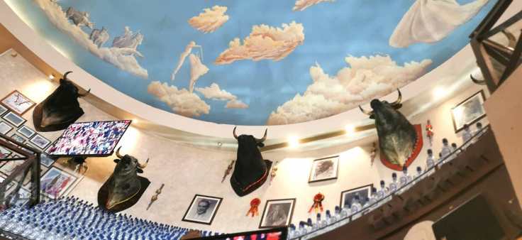 Además, todo el techo es una cúpula redonda pintada como el cielo y hay muchas cabezas de toros. Sin duda un lugar diferente que vale la pena conocer.