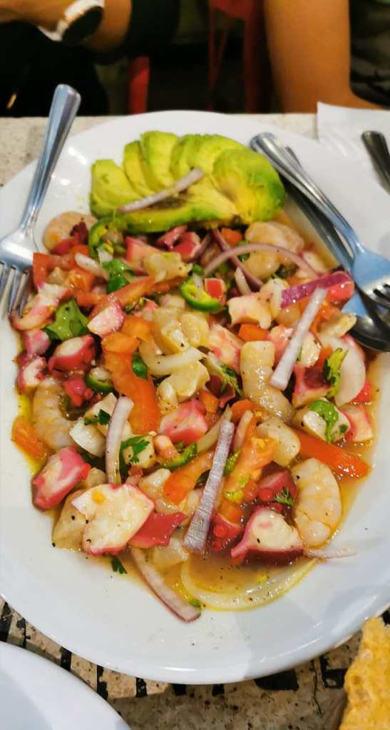 En lo que respecta a los alimentos, pudimos probar una mariscada que tenía camarón, pulpo, callo y pescado. Estaba buenísimo, con sus chilitos, que le daban muy buen sabor pero no eran tan picantes. Y para cerrar una arrachera con su papa al horno, sus frijoles y ensalada. Sólo dos platos porque son muy abundantes y claro, todo estuvo acompañado por un par de cervezas bien frías. Lástima que no había cerveza de barril.