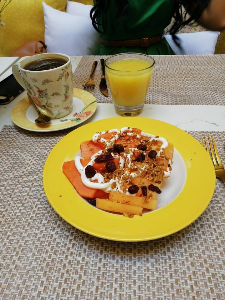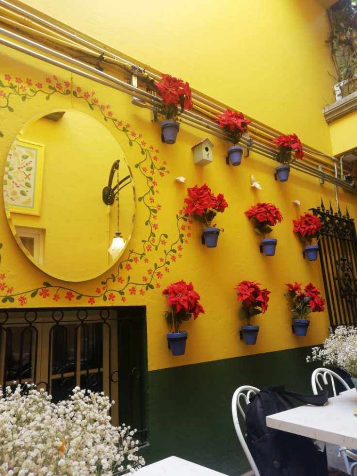 Por la temporada ya están navideños en el fondo su pared amarilla con muchas macetitas y nochebuenas le dan ese toque para recordarnos las fechas decembrinas, un lugar hermoso y un desayuno riquísimo además de que es súper tranquilo, aquí te olvidarás de el estrés diario de la ciudad. Tres Abejas esta en la calle de Valladolid 52 Roma Norte, en la colonia tienen parquímetros y de seguro encuentras lugar muy cerca si no es que exactamente en la puerta.