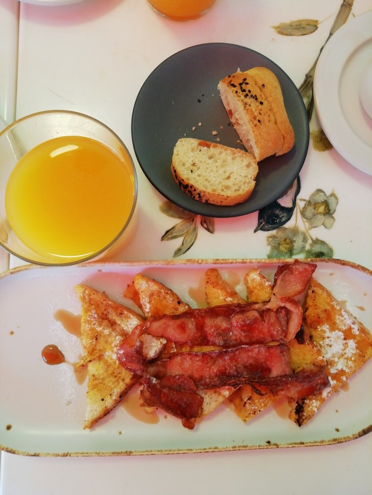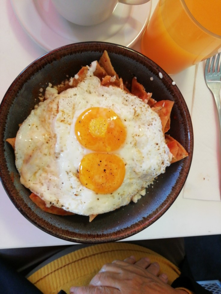 También pedimos un pan francés, con su miel, tocino y espolvoreado de azúcar glass, o que tal unos chilaquiles rojos con huevo, la presentación de todos los platos es muy cuidada, de la vista nace el amor y estos platos enamoran, a la hora de la comida tienen su menú de comida completa económico, a precios que casi se comparan con unos tacos de puesto de esquina pero mas cuidado por el aspecto de la salud, menos grasas, mas higiénico, sentados a la mesa, a nosotros nos gusta el lugar.