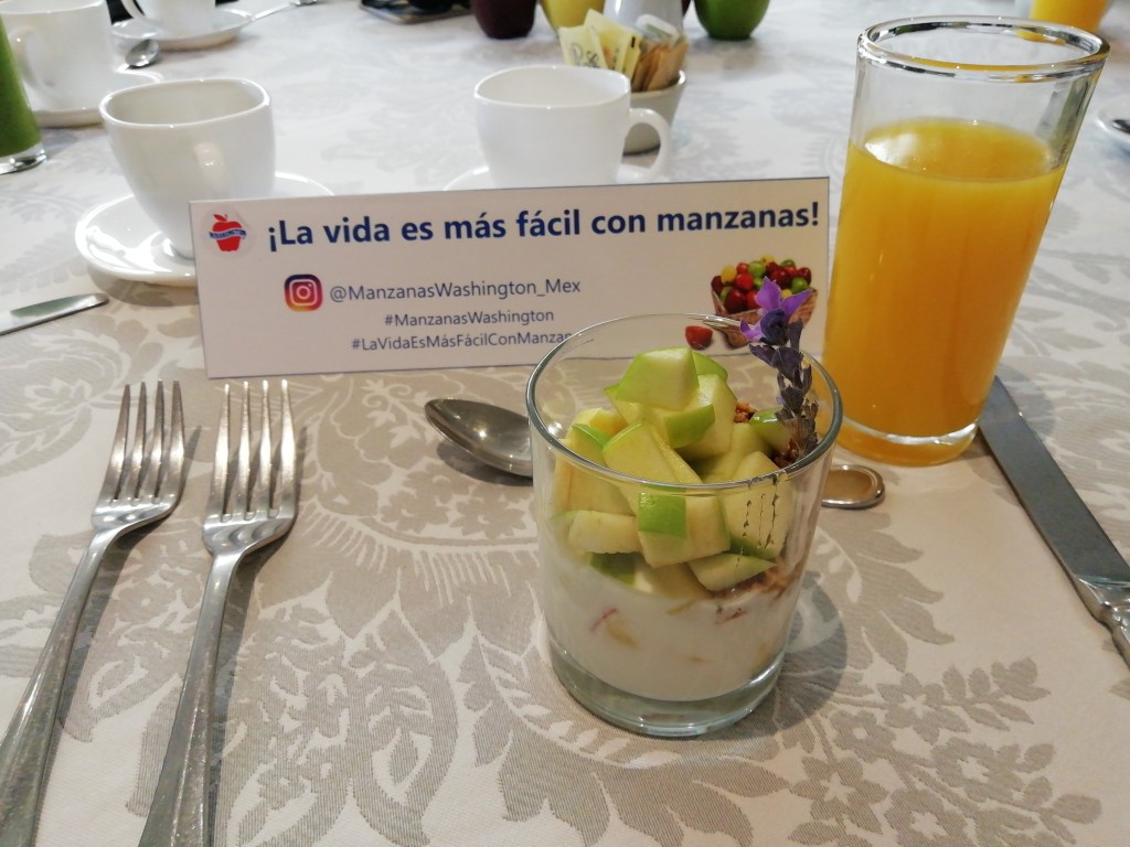 Pará esta presentación escojieron a Stara Suites, un pequeño hotel boutique en la colonia Juárez y nos deleitaron con un desayuno que incluyo manzanas con yogurth y granola como primer tiempo, y unos ricos chilaquiles verdes con pollo y frijoles refritos, café americano y jugo.