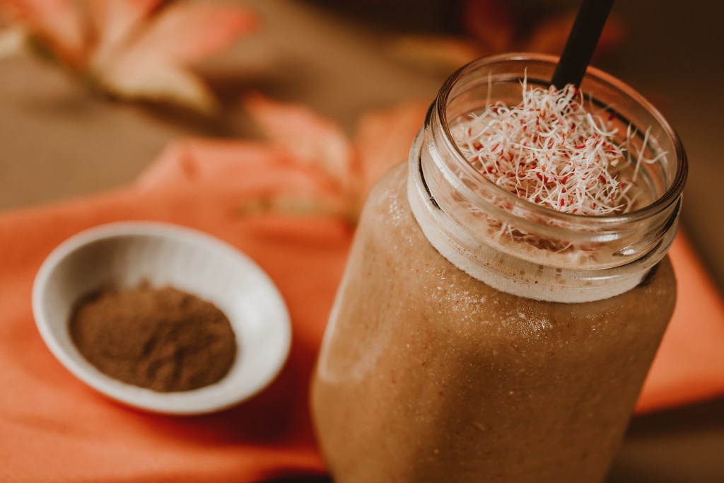 Para disfrutar los sabores de otoño prepara un rico smoothie de germinado de amaranto y calabaza.
