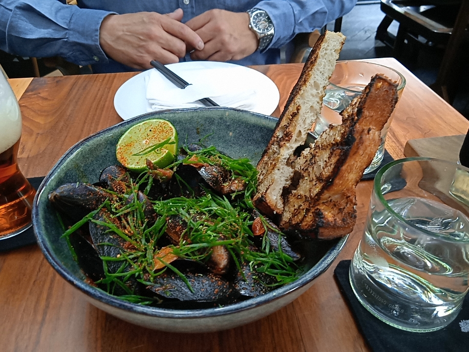 Lo mejor de los mejillones es sin duda la salsa en la que son cocinados, con un ligero picante, que al exprimirle un limón se activa y da una acidez muy refrescante. La salsa es tan buena que no dudes en pedir pan adicional para poder remojarlo.