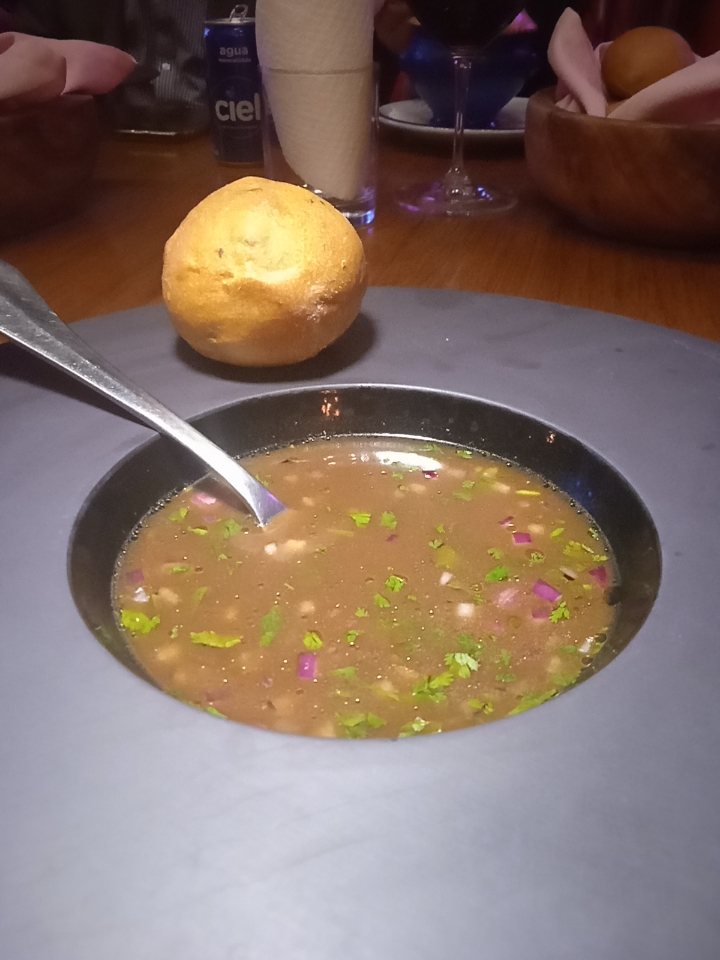 Es un lugar muy amplio, desde que llegas toman tu temperatura, pasas por su tapete sanitizante, te ofrecen gel antibacterial y te acompañan a tu mesa, una mesa en el salón principal justo frente al DJ fue nuestra elección, atrás del DJ está un videowall donde puedes estar viendo vídeos mientras disfrutas del ambiente, de tus tragos y de la comida en la que se nota la pasión por la preparación y presentación de cada platillo.