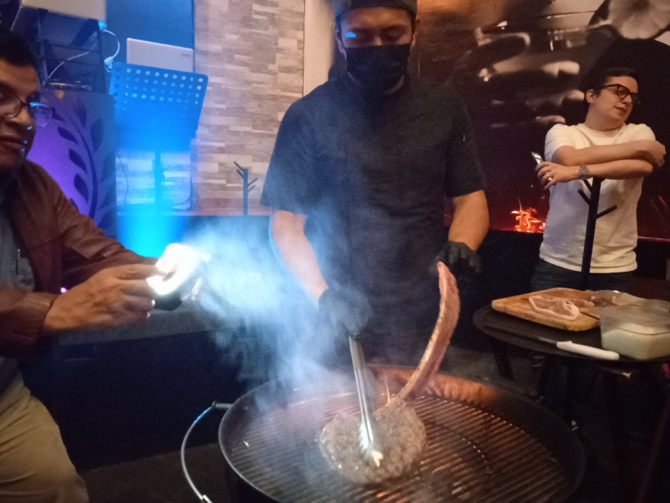 Y llegó uno de los platillos que creo es de los consentidos de el lugar y de sus clientes, un tomahawk que llega crudo a la mesa para que veas la preparación, desde el sazonado y ver cómo entra a la parrilla, uno de los mejores cortes que hemos probado, también un filete que salió de ese asador estuvo delicioso, a mi me encanta la idea de llevar el asador hasta tu mesa para preparar tus cortes, el aroma que va despidiendo hace que comiences a saborearlo desde antes que te lo sirvan.