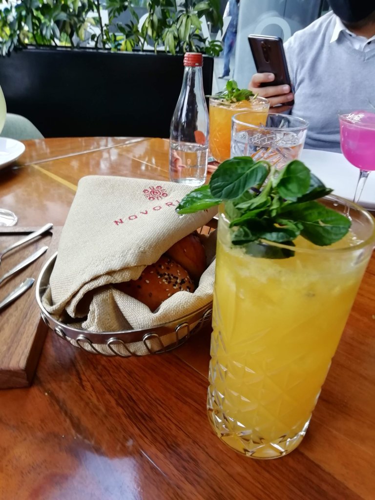 NOVORIGEN: El coctel de la casa nos da la bienvenida con una preparación de mezcal, concentrado de mandarina, aperol, licor de ancho reyes y un toque de limón.