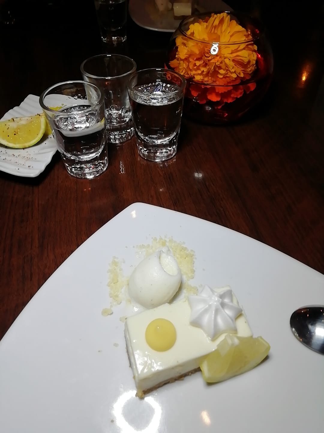 Como postre, además de un pequeño pay de limón se acompañó con pan de queso de Zacatlán, Puebla.