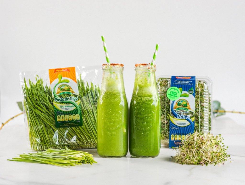 “El jugo de pasto de trigo es una poderosa bebida que te brinda hasta 75% de clorofila que ayuda a eliminar las toxinas del organismo las cuales se producen por el estilo de vida, factores ambientales y en algunas ocasiones son el resultado del funcionamiento natural del cuerpo”