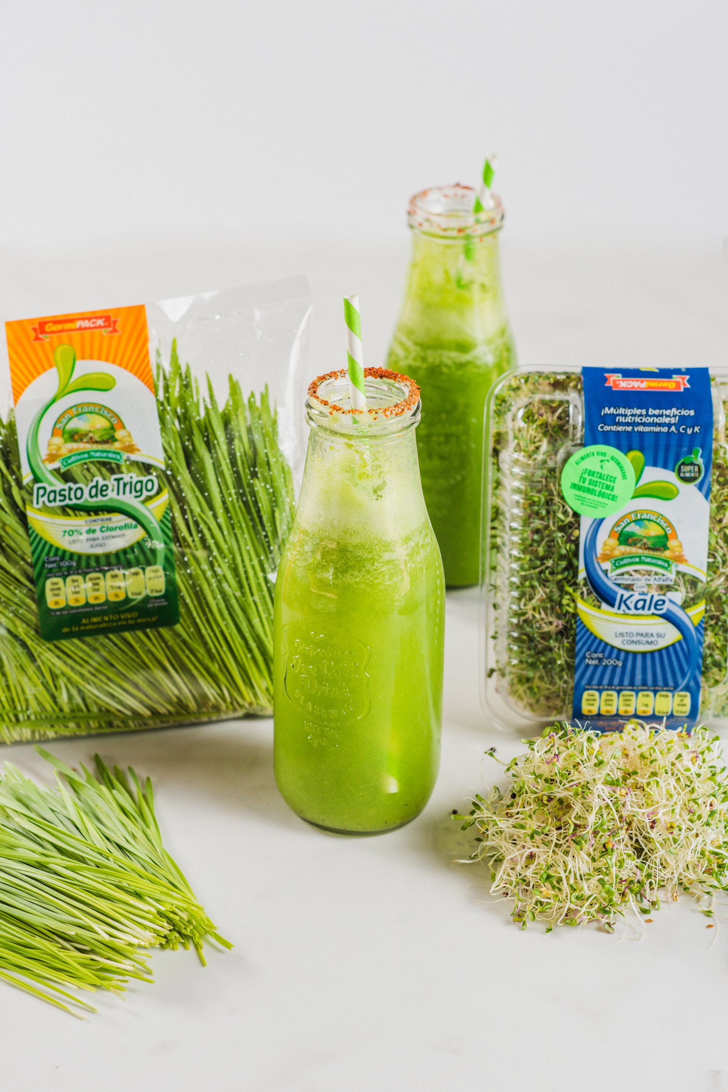 Cultivos Naturales San Francisco, marca mexicana enfocada en la producción de germinados y brotes, ofrece dentro de su línea de productos el pasto de trigo. La marca sugiere que una vez adquirido se refrigere y se consuma dentro de los primeros 12 días después de haber abierto el empaque.