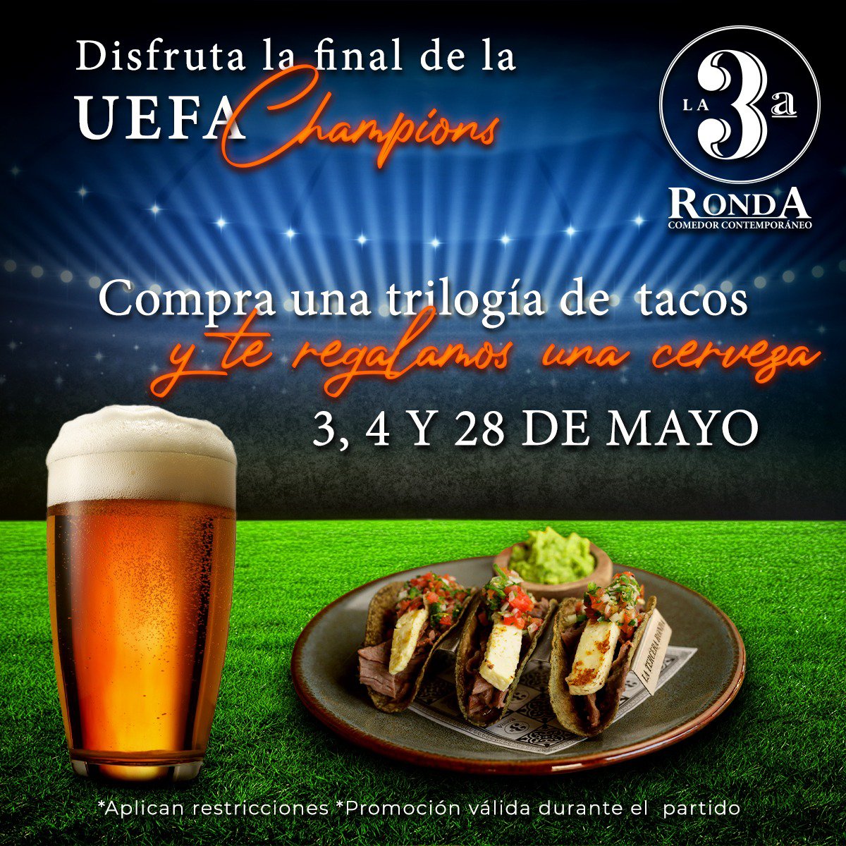 Una gran opción es ver la final entre Liverpool y Real Madrid este 28 de mayo en La 3ª ronda, es el lugar ideal por su gran ambiente y su promoción permanente de rondas triples de bebidas que le dan el nombre al lugar. Su carta de alimentos incluye deliciosos antojitos mexicanos como chalupas, gorditas, tacos, tlayudas además de platillos únicos como su mini pastora de cecina o sus cortes de carne, las opciones son para todos los gustos.