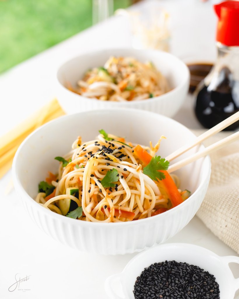 3. Agrega el surimi, cebolla, pepino y el germinado de soya de Cultivos Naturales San Francisco troceándolo.