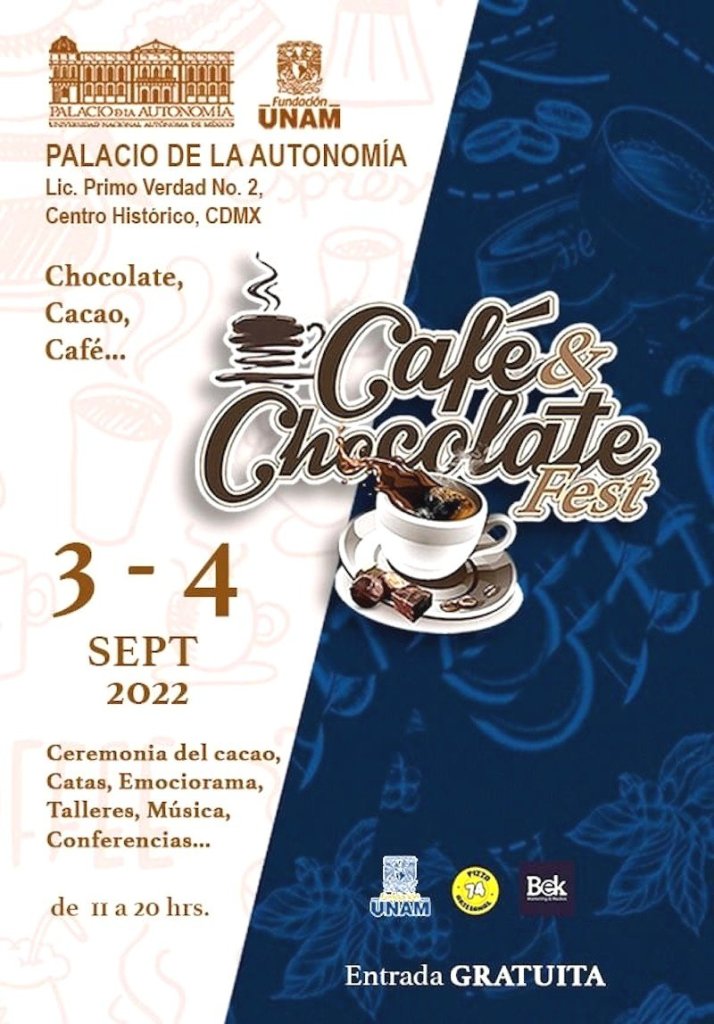Los días sábado 3 y domingo 4 de Septiembre, el Palacio de la Autonomía de la Fundación UNAM recibirá a partir de las 11 horas, a más 40 expositores del centro y sureste de México, para ofrecer al público todo tipo de café de grano y un sin fin de chocolates como bombones con rellenos inimaginables, delicosas trufas, chocolate de barra y molinillos, mazapanes, alfajores, gomitas, helados, pasteles, bebidas frías y calientes y muchas delicias más de la mano de productores independientes; productos que solo se podrán conseguir en el CAFÉ & CHOCOLATE FEST, un evento cultural y gastronómico que ha adoptado como sede predilecta este museo y centro cultural ubicado en la calle Lic. Primo de Verdad No. 2, esquina con Moneda, en el Centro Histórico de la Ciudad de México. En este bello recinto se celebrará en grande la Edición No. 15 de este festín de sabores, en el que los expositores además de dar a degustar sus productos y ofertarlos a precios muy accesibles, crean un intercambio cultural con el público, platicando sobre su elaboración, maridajes, propiedades y beneficios para la salud.