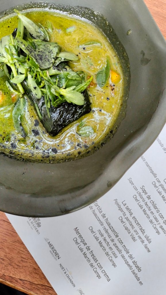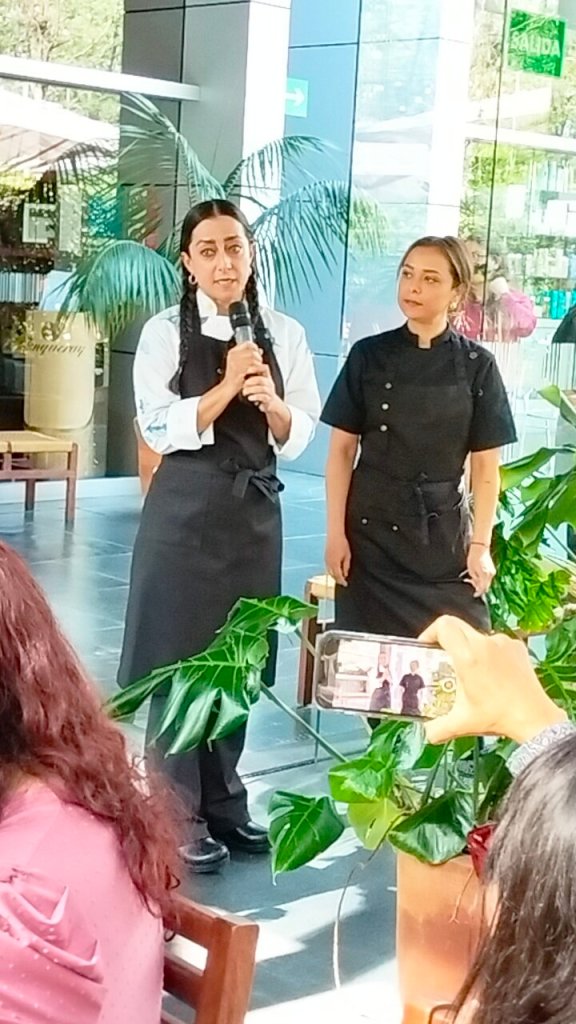 Para celebrar estos 5 años tuvo como invitada especial, a la chef Lupita Vidal del restaurante «La Cevichería de Tabasco», con quién compartió los fogones ellas nos presentaron un menú especial para esta celebración, comenzamos con «De Agua Hermosa es mi Abolengo», un cóctel creación de la chef Lupita, Matalì, vino espumoso y jugo de naranja, y de primera entrada «Más Agua que Tierra», una tostada de pozol, calabaza criolla, queso de hoja y Macha de oreja de mico, una verdadera delicia que a todos nos encantó, después una «Calabaza de otoño» de la chef Lula, calabaza mantequilla con glaseado de 3 chiles, salsa de queso St. Paulin y también el «Sope de Chilorio» con queso asadero, en seguida llegaron los principales y el primero de Lupita «la Selva, Encerrada, Ulula», Pejelagarto, oro verde, ñame, y el de Lula «Tortita de Huautzontle con mole del abuelo», Huautzontle relleno de quesillo oaxaqueño bañada con mole del abuelo, y para finalizar el postre por la chef Lula un «Merengue de Fresas con Crema», los nombres de los platos de la chef Lupita fueron tomados de los poemas de Carlos Pellicer otro Tabasqueño destacado.
