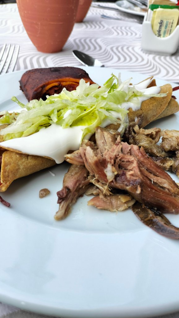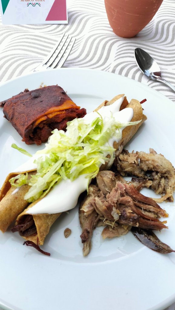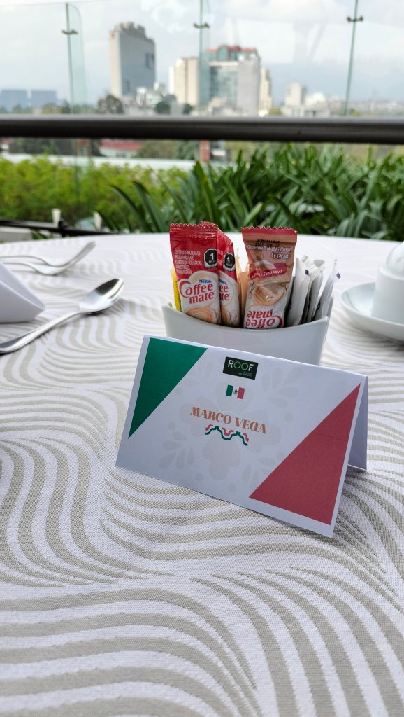 Desde el 6 piso tienes una vista 360⁰ de esa parte de la ciudad, ahí fue donde disfrutamos de este Brunch mexicano, entre los platillos que pudimos probar estaba su barbacoa jugosa, sus carnitas que me recordaron a las de Carmelo en Quiroga, había chilaquiles, flautas, crepas de cochinita pibil con salsa de frijol, molletes, quesadillas hechas al momento igual que los huevos al gusto fueron algunos de los platillos que probamos.