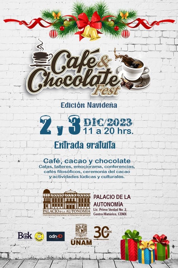Los días 2 Y 3 DE DICIEMBRE se llevará a cabo el CAFÉ Y CHOCOLATE FEST EDICIÓN NAVIDEÑA en el PALACIO DE LA AUTONOMÍA DE LA FUNDACIÓN UNAM.