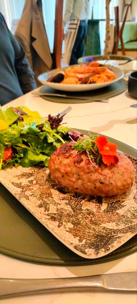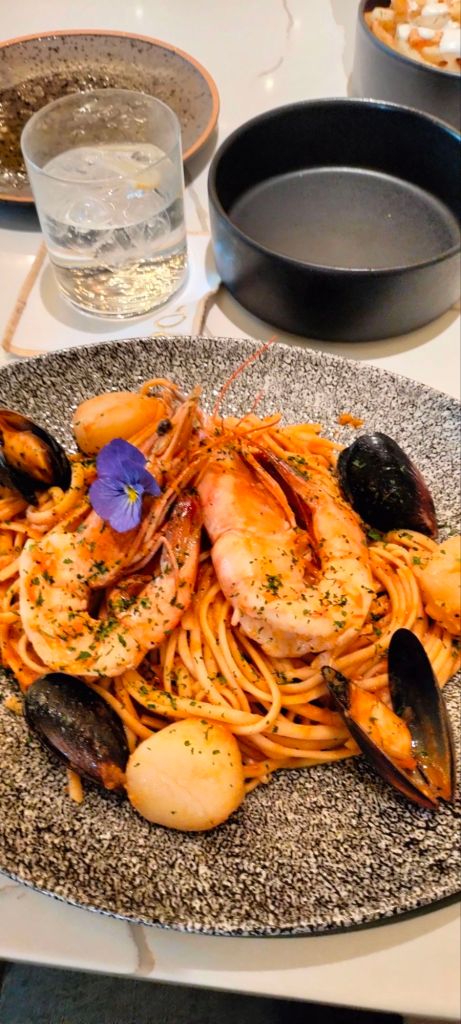 De plato fuerte pedí el rack de cordero por el que regresaría todos los días, una carne súper suave por sugerencia de Jesús nuestro mesero un poquito pasado de termino medio, por cierto Jesús nos a atendido las 2 veces que hemos ido en menos de un mes que tiene de inugurado mentor, también pedimos Mpifteki un tipo albóndiga grande rellena de queso ahumado y feta y también el spaghetti fishersman un plato abundante pude ver con camarones y callo de hacha, imagino que muy bueno porque a pesar de ser muy abundante desapareció de el plato muy rápido.