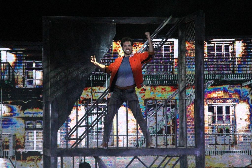 Excelente producción, una escenografía cambiante que nos lleva a los distintos lugares donde se desarrolla la obra que nos muestra la rivalidad entre «los Jets» y «los Sharks» que se disputan el control de «West Side», en esta historia al igual que en «Romeo y Julieta» existe una historia de amor la pareja formada de entre las 2 pandillas rivales.