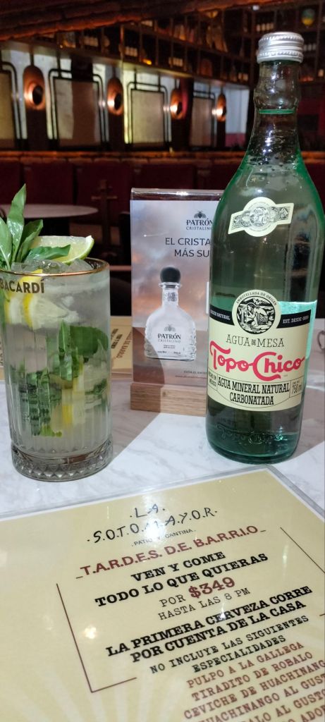 Pero regresemos al 2024, La Sotomayor es un patio cantina en el corazón de Polanco, iluminación calida, tonos naranjas y amarillos, una enorme esfera de espejos en tonos cobrizos al centro de la terraza, un candelabro y espejos que invitan a tomarse la foto del recuerdo, de su barra salen los mejores tragos para esa sed de la buena porque en La Sotomayor no existe nada malo.