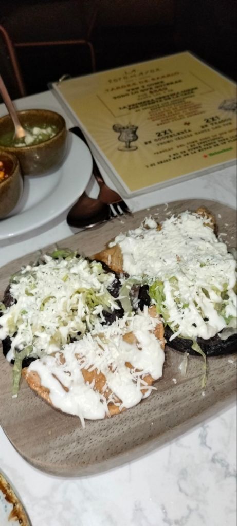 En su carta de alimentos encontramos antojitos mexicanos y platillos con un toque de elegancia, el ceviche de Huachinango en salsa bruja o el pecho de ternera al horno, de sus postres todo se antoja, la sugerencia fueron los buñuelos con su jarabe de piloncillo con guayaba buenísimos, con el plus de que viene acompañado de helado.