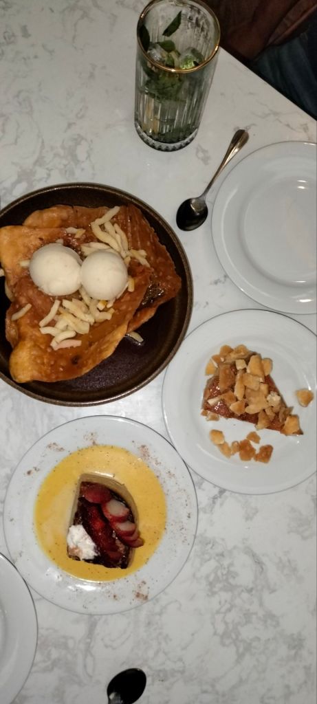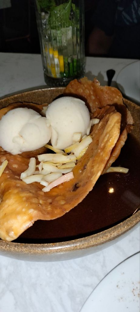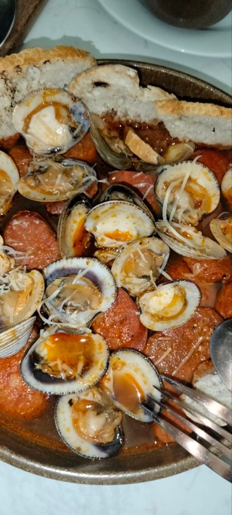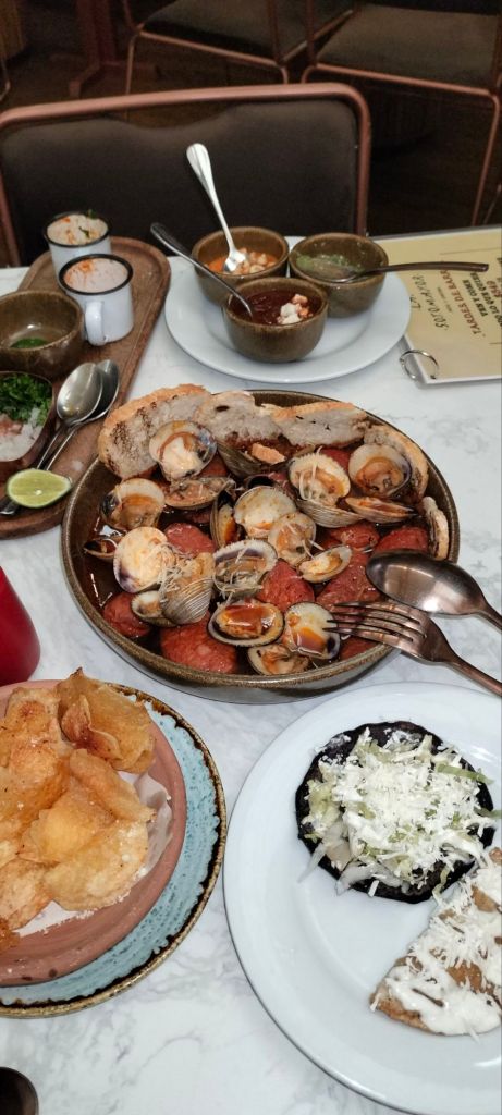 También el Pulpo ó la cazuela de almejas a la cerveza y chorizo español su salsa es adictiva,y son de los platos consentidos, su carta de cócteles muy original como su Jaibol Colón o el Jaibol La Pinta, el Bull Sotomayor y el carajillo de horchata, solo 3 opciones de postres y aún así es difícil la decisión entre el flan de caramelo con muegano, el arroz con leche y pasas o el buñuelo con jarabe de piloncillo y guayaba que es delicioso.