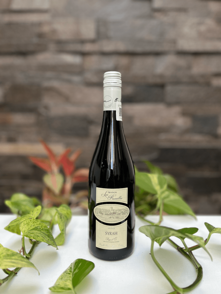 Maison Les Prunelles Syrah: vino tinto de color rubí intenso. El aroma fresco y especiado de este vino revela expresivas notas de frutas y bayas entrelazadas con notas de pimienta negra, canela y minerales. En el sabor aterciopelado, profundo y jugoso, destacan notas de ciruela madura y mora que dan pasos a matices especiados. Los taninos redondos forman un retrogusto persistente con notas de canela y pimienta negra.