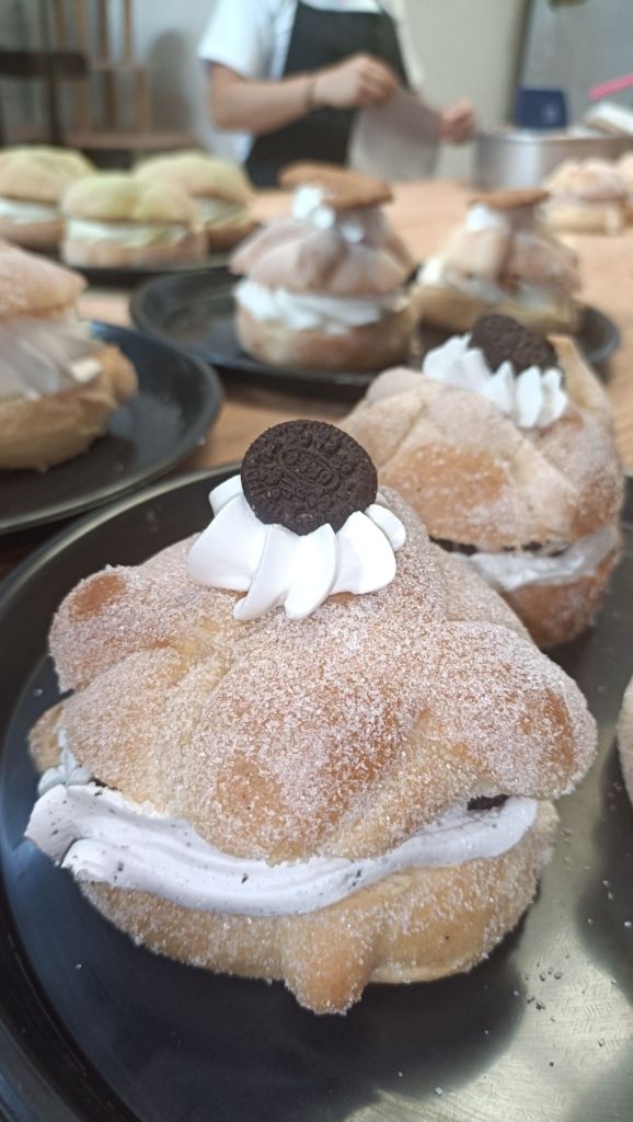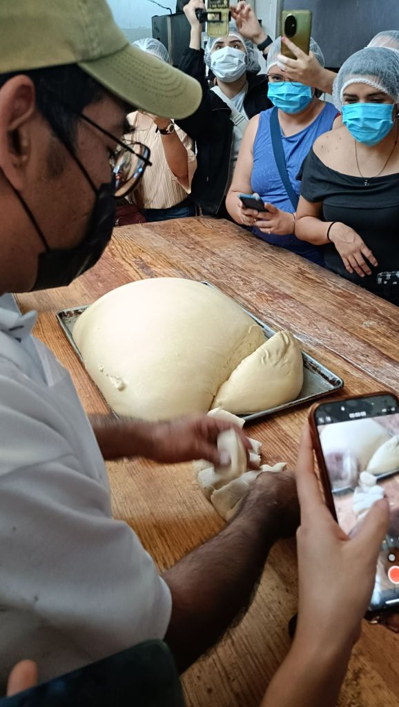 El presidente del Consejo de la Comunicación y Julián Castañon presidente de la CANAIPA Y administración de la panadería La Tahona nos invitaron a una dinámica muy divertida donde conocimos como se hace este pan tan delicioso, pudimos cada uno de los invitados hacer nuestro pan individual, desde bolear la masa, hacer los huesitos, nos explicaron que la masa no se debe estar agarrando mucho porque la mantequilla se calienta y se empieza a hacer las pegajosa, hacer pan no es sencillo pero en La Tahona los maestros panaderos lo hacían ver muy fácil.