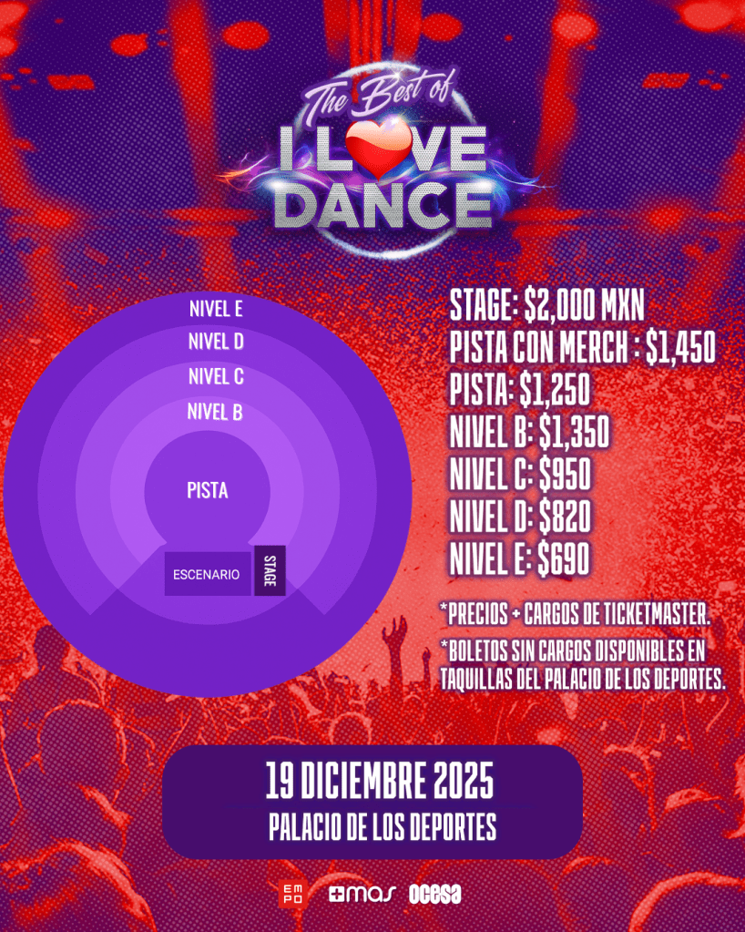 Este 19 de diciembre, el Palacio de los Deportes será escenario de The Best of I LOVE DANCE, la edición más ambiciosa de este fenómeno musical que transforma la nostalgia en una experiencia viva, llena de ritmo, luces y emoción que atraviesa generaciones. Por primera vez, artistas que marcaron historia junto con nuevas estrellas del Eurodance y pop electrónico se reunirán en un solo escenario para crear un espectáculo inolvidable.
