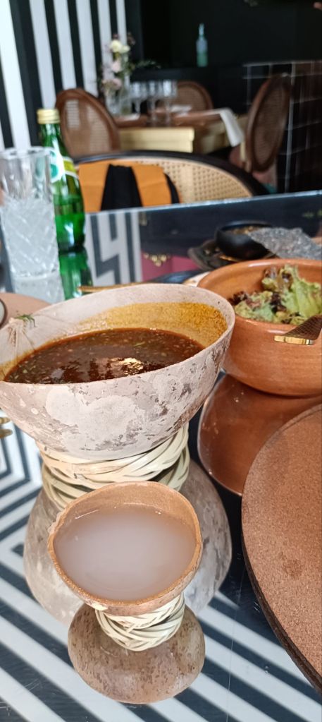 Si vienen, tienen que pedir el jugo de carne. Les digo con toda mi experiencia como Chef: es el mejor que he comido en mucho tiempo. Lo sirven tal cual le gustaba a María: acompañado de un shot de pulque que le da una profundidad de sabor y una acidez que simplemente no tiene comparación. Es un viaje directo a las raíces del México elegante.