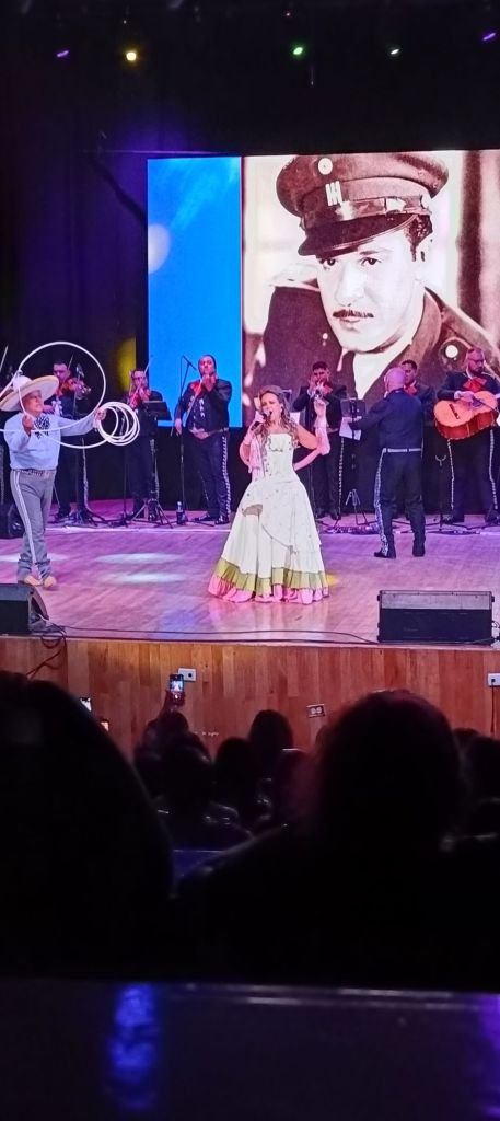 El show fue un verdadero espectáculo. Hubo floreo de reata y cambios de vestuario que nos recordaron las múltiples facetas de Pedro. «El Jilguero» salió vestido con la clásica playera a rayas de «El Torito», arrancando con «Ufemia». La energía era tal que hasta la alcaldesa subió al escenario a cantar una estrofa junto a él.