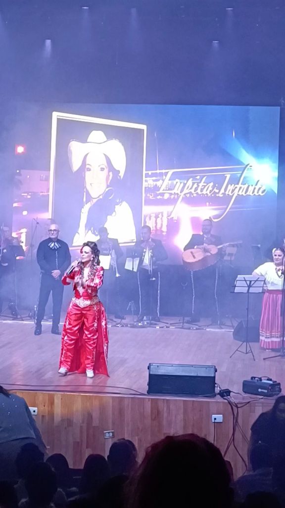 La noche se engalanó con la presencia de Lupita Infante Torrentera, hija del ídolo, quien ataviada en un traje de charro en color rojo fue quien agradeció profundamente a la alcaldía Azcapotzalco por mantener vivo el legado de su padre.