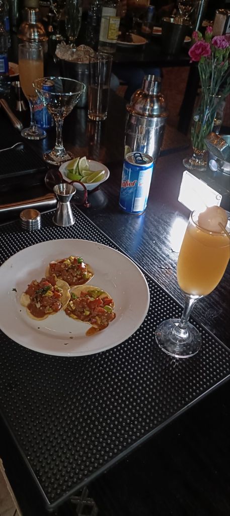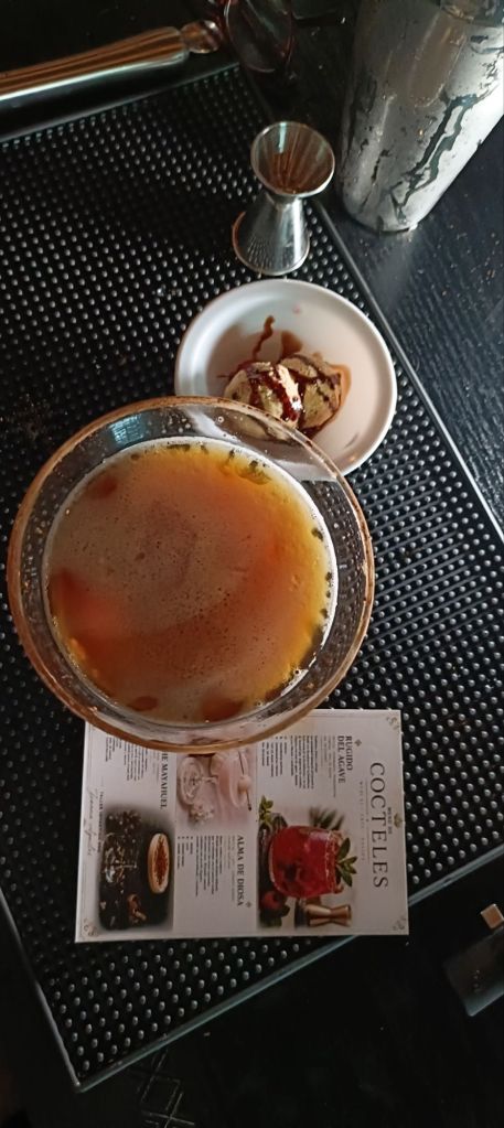 El segundo tiempo fue más sofisticado. Una mezcla de Mezcal, Lichi, Vermut Rosso y jarabe natural. Es un trago envolvente, donde la dulzura del lichi se entrelaza perfecto con las notas herbales del mezcal.